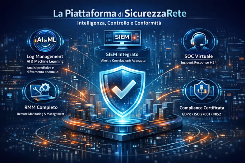 SicurezzaRete offre standard di massimo livello qualitativo nella cybersecurity adottando una piattaforma proprietaria che unisce, in un unico ecosistema, tecnologie avanzate di analisi, monitoraggio e protezione. Una soluzione completa, automatizzata e progettata per garantire sicurezza, efficienza operativa e piena conformità normativa.